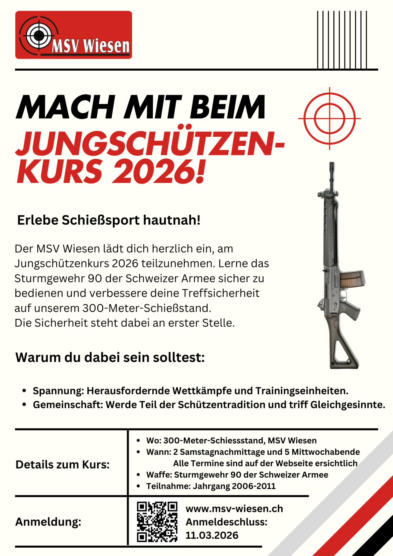 Beim Schweizerischen Sektionsmeisterschaftsfinal in Thun traten die besten Vereine der Schweiz gegeneinander an. Als einziger Vertreter aus dem Kanton St. Gallen qualifizierten sich die Schützen des MSV Wiesen nach zwei erfolgreichen Hauptrunden für den Final.